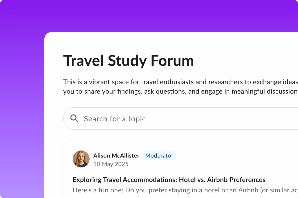 Run surveys, live discussions, and AI-moderated interviews side-by-side. Bring qualitative depth and quantitative scale together to move from “what happened” to “why it matters”—faster.