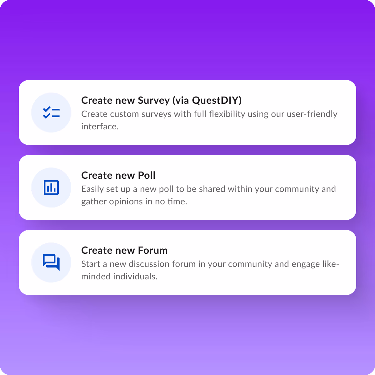 QuestIC centralizes your community engagement, surveys, and analysis—streamlining your workflow while deepening your insights.